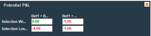 ThePotential P&Lsection of the New Bet Plan tab calculates the resulting P&L for the values entered on the bet plan if the bets are fully matched. It shows both cases for if the selection wins or loses the market. It also shows the result for whether or not the stop-loss bet is triggered.