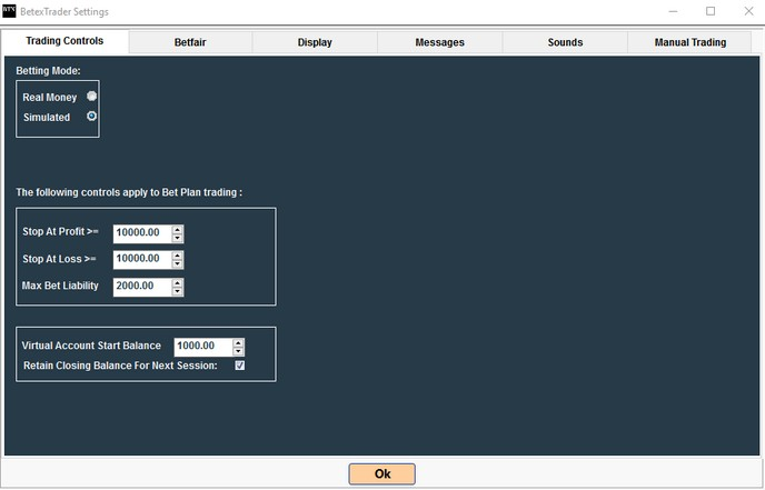 In Simulated trading mode the betting activity will not use real money from the your account but instead the BTX monitors the market prices/volumes and estimates when the required bets would have been matched and updates the P&L accordingly. Simulated trading mode enables you to test out strategies without risking any of his bankroll.