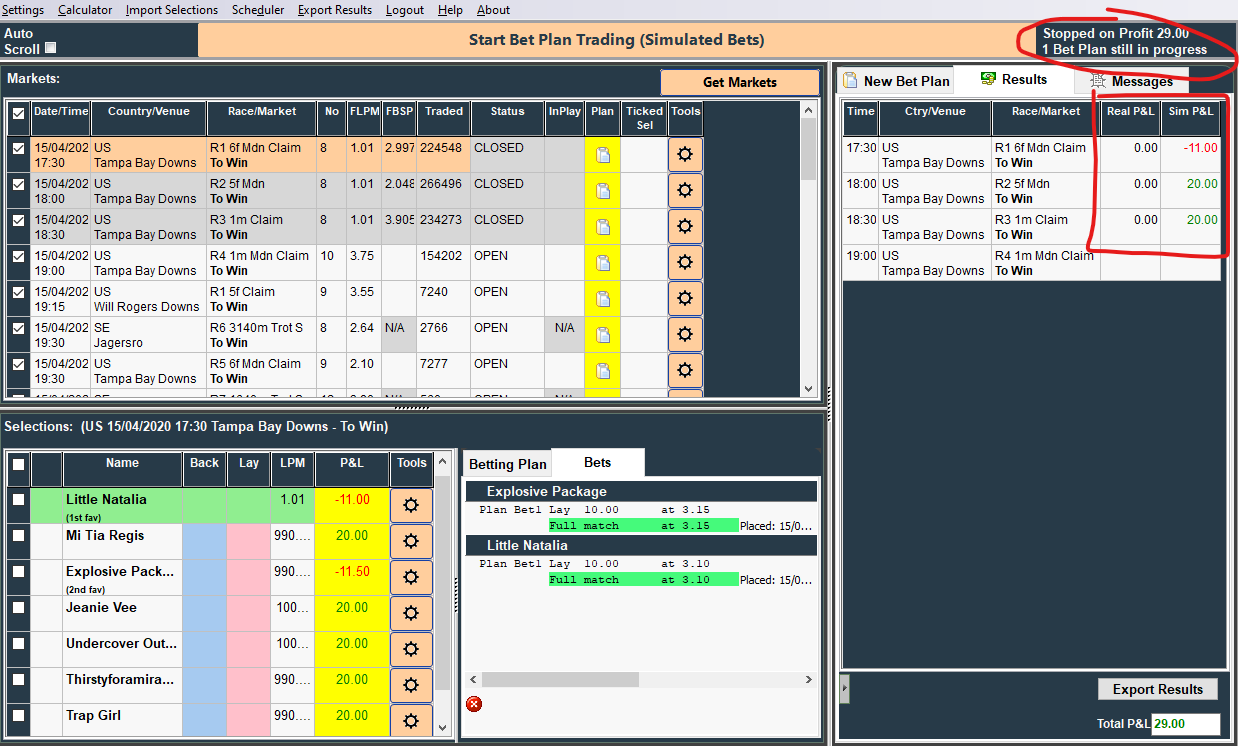 •Sim P&L– Will display the predicted gross P&L resulting from simulated bets placed on each market.