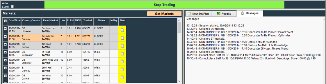 It will display the number of markets loaded into the Markets list. It will also display details of any non-runners as they arise and