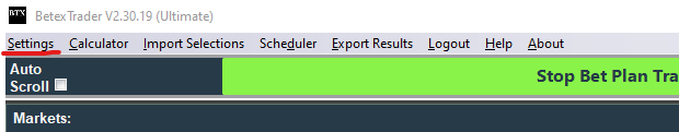 Displays the BTX Settings screen. The Settings options break down into 4 sections: