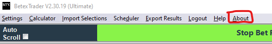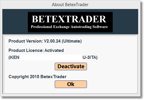 Displays a screen containing BTX version, license status and copyright information.