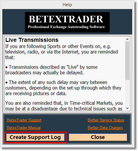 A button is available on the Help screen called ‘Create Error Log’. If you experiences a problem or error while using the BTX, he can click this button to generate an BTX log file.