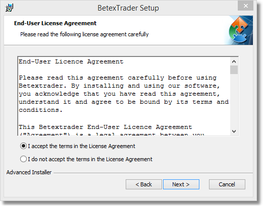 Installing BetexTrader is very easy, just the same as installing any other Windows based software.