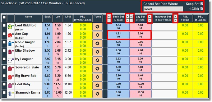 The Offset Ticks can be changed via the up/down arrows at the top right of the Back, Lay and Trade Out bet columns