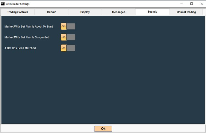 Contains a list of options for enabling/disabling an audible notification of various events.