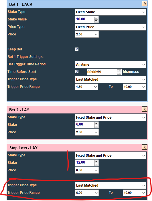 Note: If the Stop-Loss bet is triggered then Bet2 (if applicable to the bet plan) will be canceled.